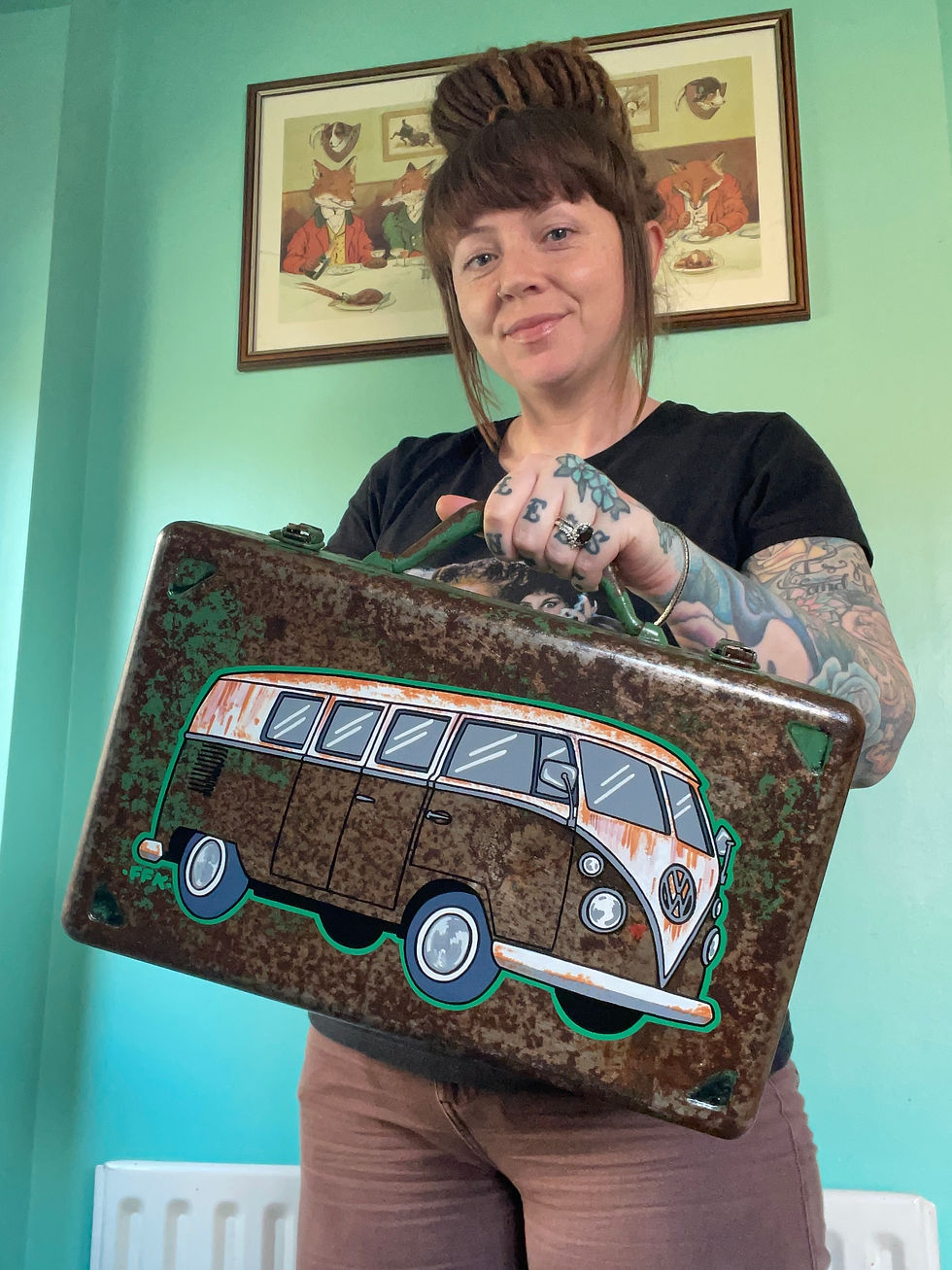 Here at Frankenfreckle Kustoms, I create original, one off pieces, on every kind of canvas you can think of. Vintage metals, patina and rust are my absolute favourite, but I also work on wood, glass, leather, and more! Check out all my sold pieces and other projects over on Facebook or Instagram 💚
