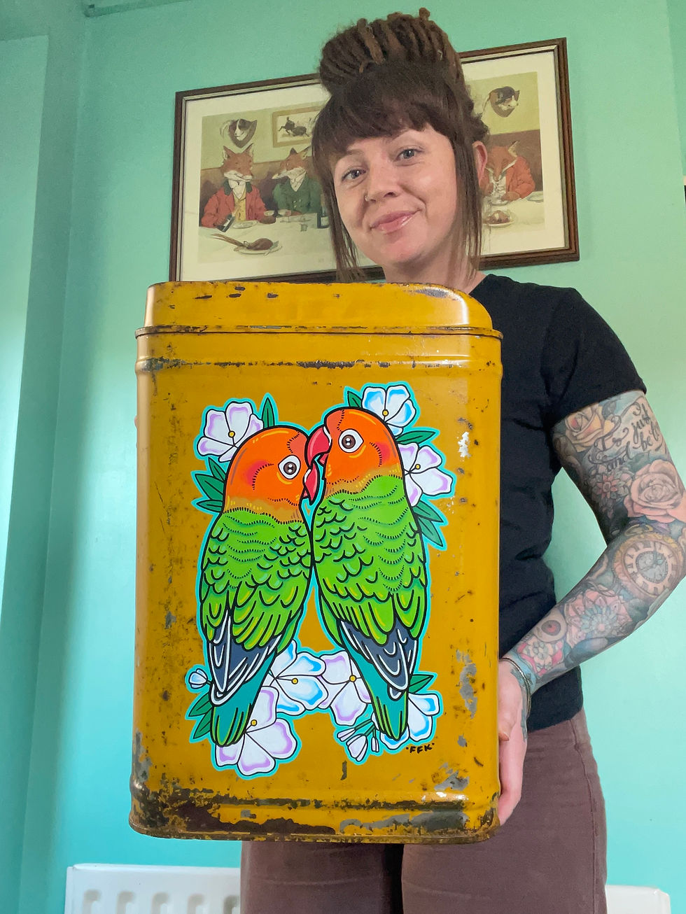 Hi! I’m Sophie, aka Frankenfreckle. I’m an internationally commissioned custom artist, taking inspiration from hotrod, tattoo, and horror genres. Check out my shop for pieces ready to go, merch, and gift vouchers; or get in touch to discuss a custom piece 💚